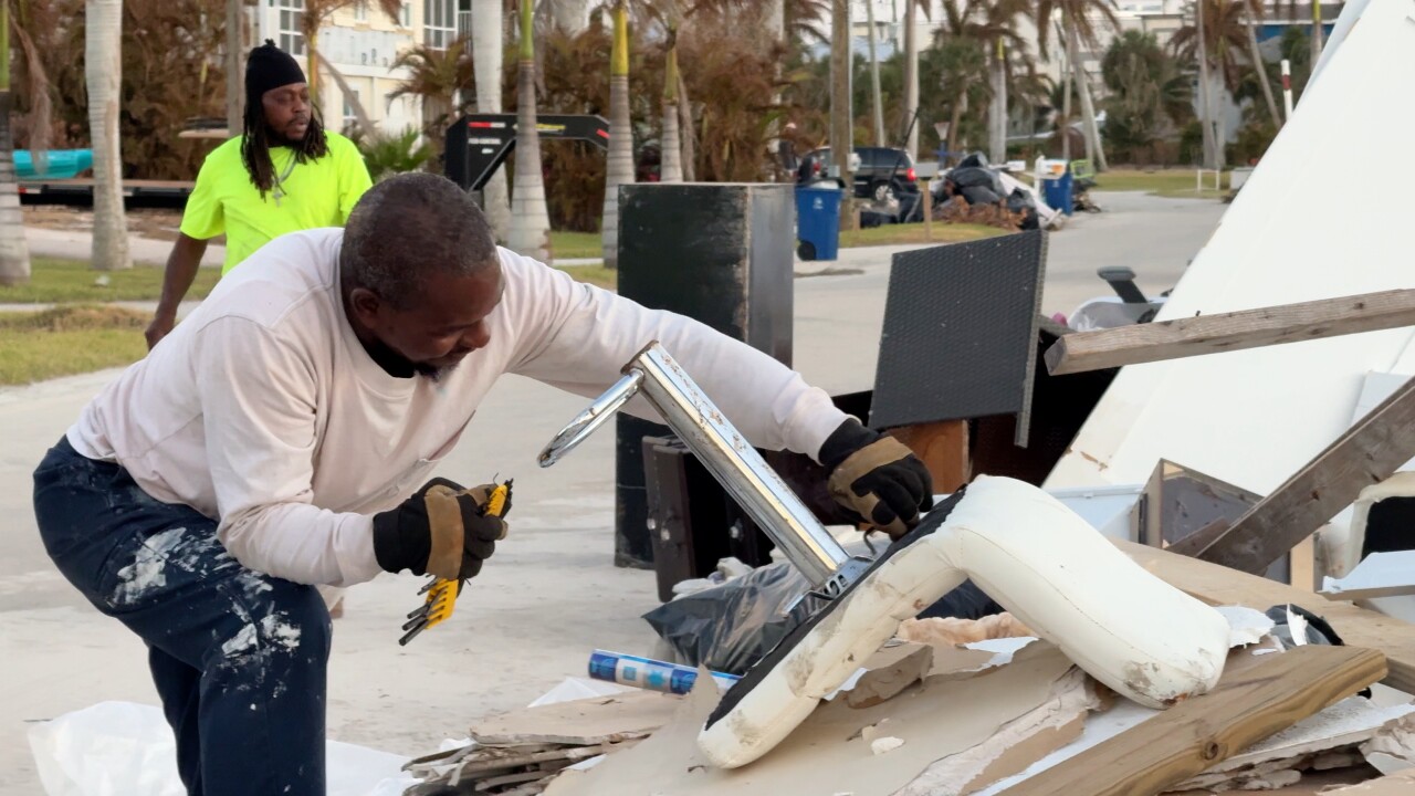 Las calles de la isla de San Carlos ahora están llenas de electrodomésticos dañados y otros escombros, pero para algunos, esta basura presenta una oportunidad. Jaeril Dortch ha estado ayudando a limpiar las calles durante las últimas dos semanas, y lo ve como una forma de apoyar tanto a la comunidad como a sí mismo.