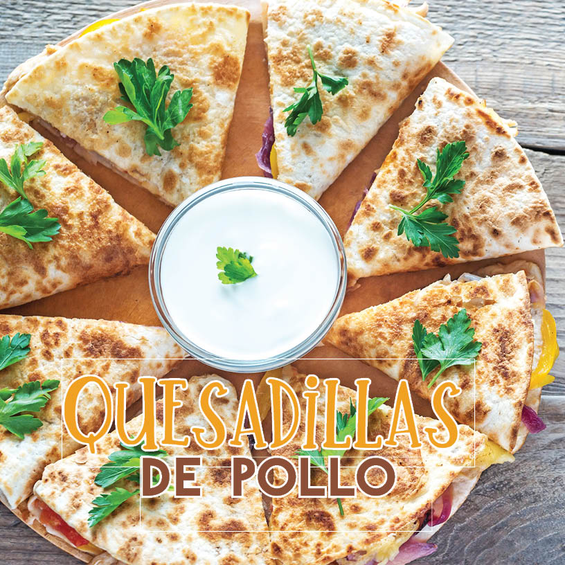 INGREDIENTES PARA 4 QUESADILLAS: 4 tortillas de maíz; 400 gr de pechuga de pollo; medio pimiento rojo; media cebolla; queso para fundir (mozzarella, cheddar, emmental, etc.); sal; pimienta; aceite de oliva virgen extra.