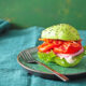 INGREDIENTES:4 aguacates partidos por la mitad1 pimiento rojo fileteado1 pimiento verde fileteado1 pimiento amarillo fileteado1 pimiento naranja fileteado1/2 col morada rallada1/2 lechuga deshojada4 rebanadas de quesoMayonesa1...