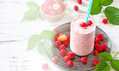 INGREDIENTES:1 cucharada de proteína en polvo de vainilla1 cucharada de linaza1/3 taza de frambuesas1/2 taza de leche de coco1/4 taza de hielo1 cucharadita de esencia de...