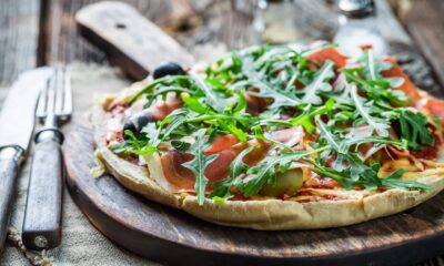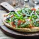 INGREDIENTES:1 base para pizza3 tomates (o más, dependiendo del tamaño de la base de la pizza)Queso mozzarella (fresca, en lonchas o rallada)RúculaJamón SerranoQueso parmesanoAceite de olivaSal...